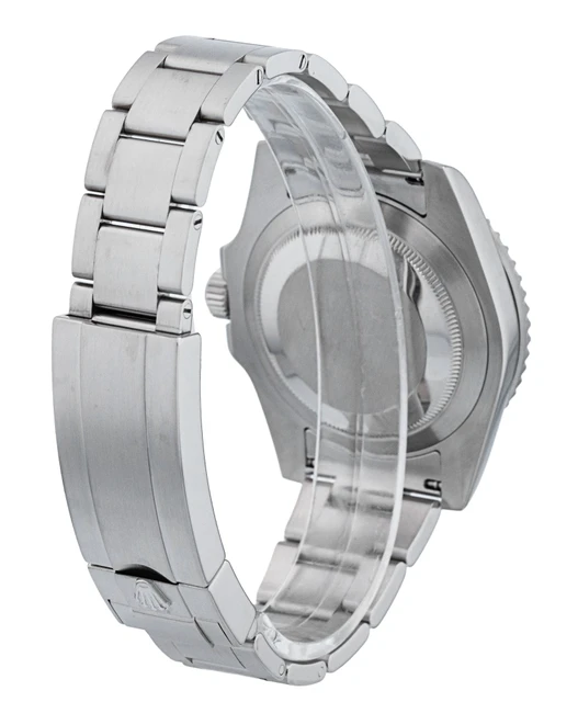 40mm stainless steel automatic watch with a black dial and unidirectional ceramic bezel on an Oyster bracelet. Features a date display with cyclops lens, luminous hour markers, and 300M water resistance. Includes box and papers.